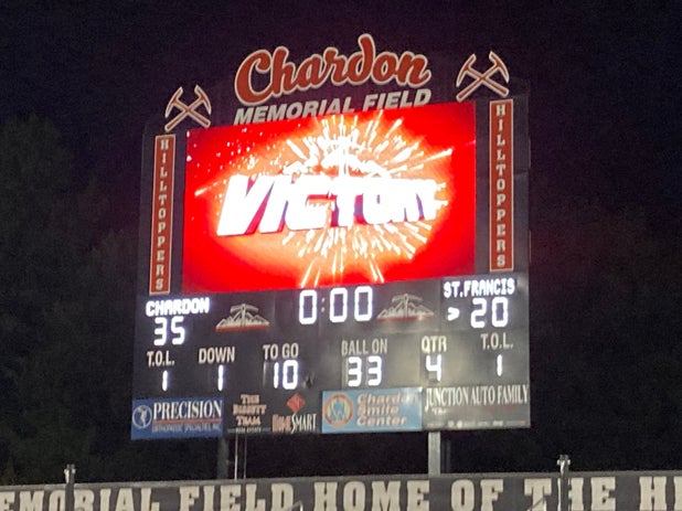 September 8, 2023: Chardon, OH 44024 The Chardon Hilltoppers football squad scored 35 points and restricted the visiting St. Francis Red Raiders to 20 in the Hilltoppers non-league victory on Friday.