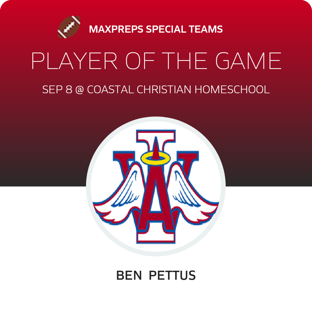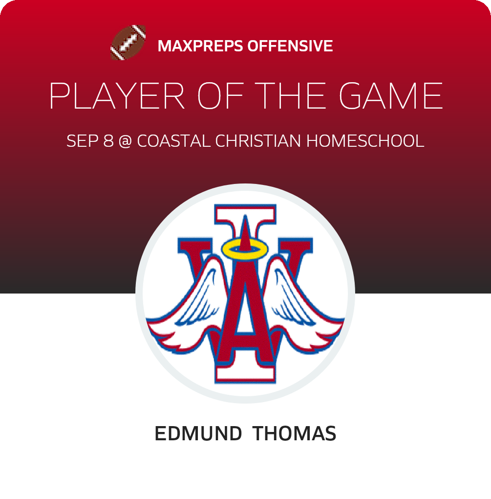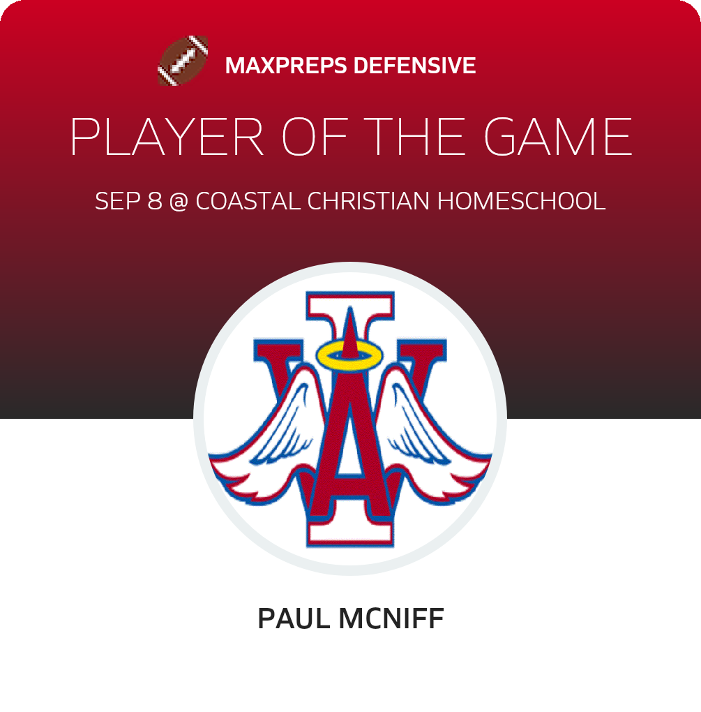 Congratulations to #1 Tali Burgess (overall) and #15 Tucker Anderson (offensive) for being selected the Coastal Christian HomeSchool Football Players of the Game.