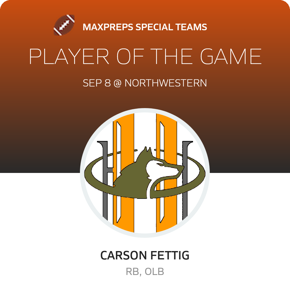 HH – Carson Fettig 38-yard punt return – Eric Balcom 2 pt run – 9:10