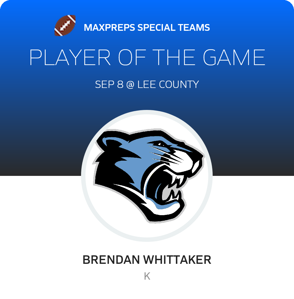 Congratulations to #7 Bradley Brown Jr. (overall), #55 Kentrelle White (offensive), #17 Isaac Peoples (defensive) and #0 Julian Best (special teams) for being selected the Lee County Football Players of the Game.