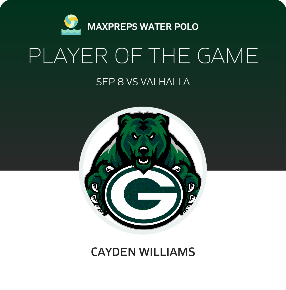 Congratulations to #16 Cayden Williams for being selected the Granite Bay Water Polo Player of the Game.