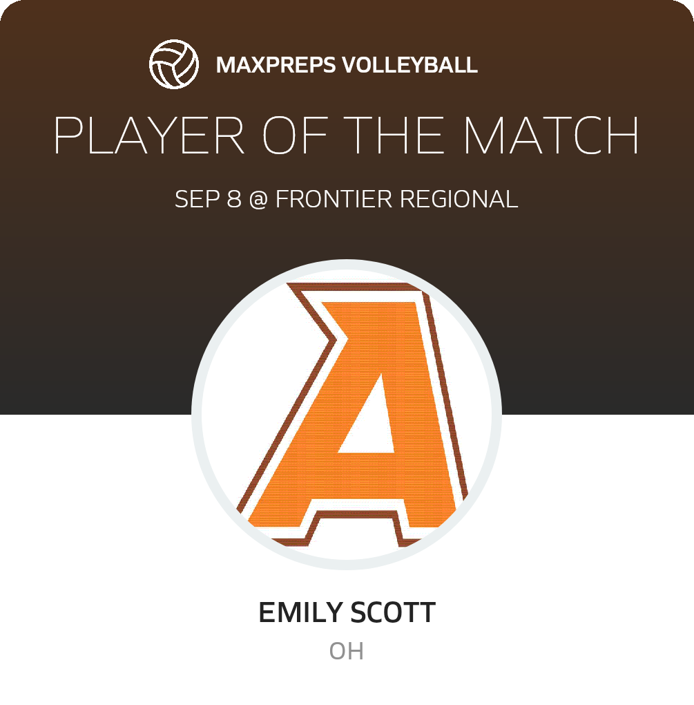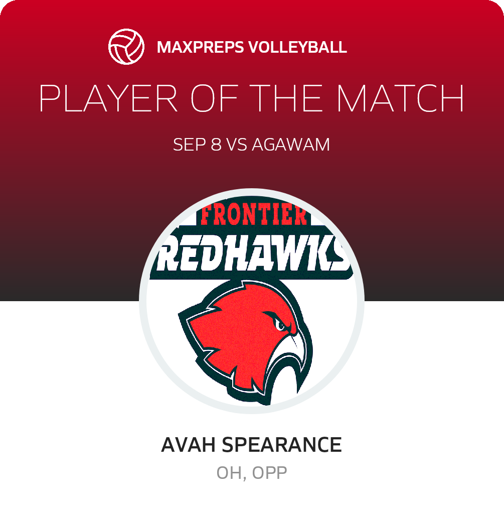 September 8, 2025: South Deerfield, MA 01373 The Frontier Regional Red Hawks (South Deerfield, MA) volleyball held off the visiting Agawam Brownies (Agawam, MA), 3-2 in Monday's league bout.