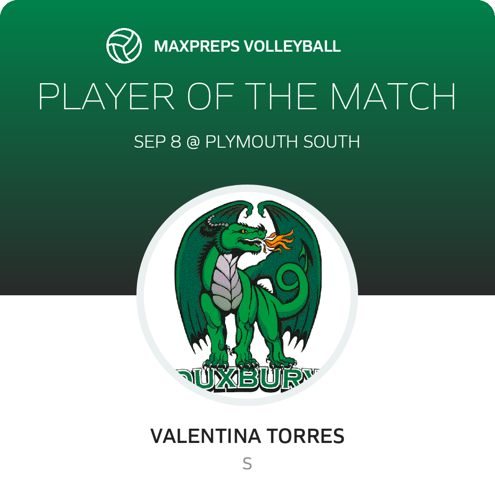 September 8, 2025: Plymouth, MA 02360 In Monday's league challenge, the visiting Duxbury Dragons volleyball team scored a 3-0 triumph over the Plymouth South Panthers.