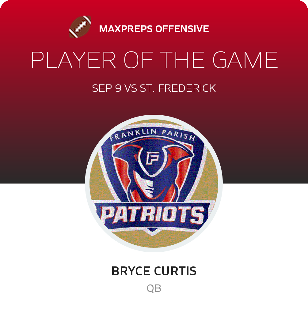 September 9, 2022: Winnsboro, LA 71295 In Friday's non-league game, the Franklin Parish Patriots (Winnsboro, LA) football team got by the visiting St. Frederick Warriors (Monroe, LA), by a score of 23-20.