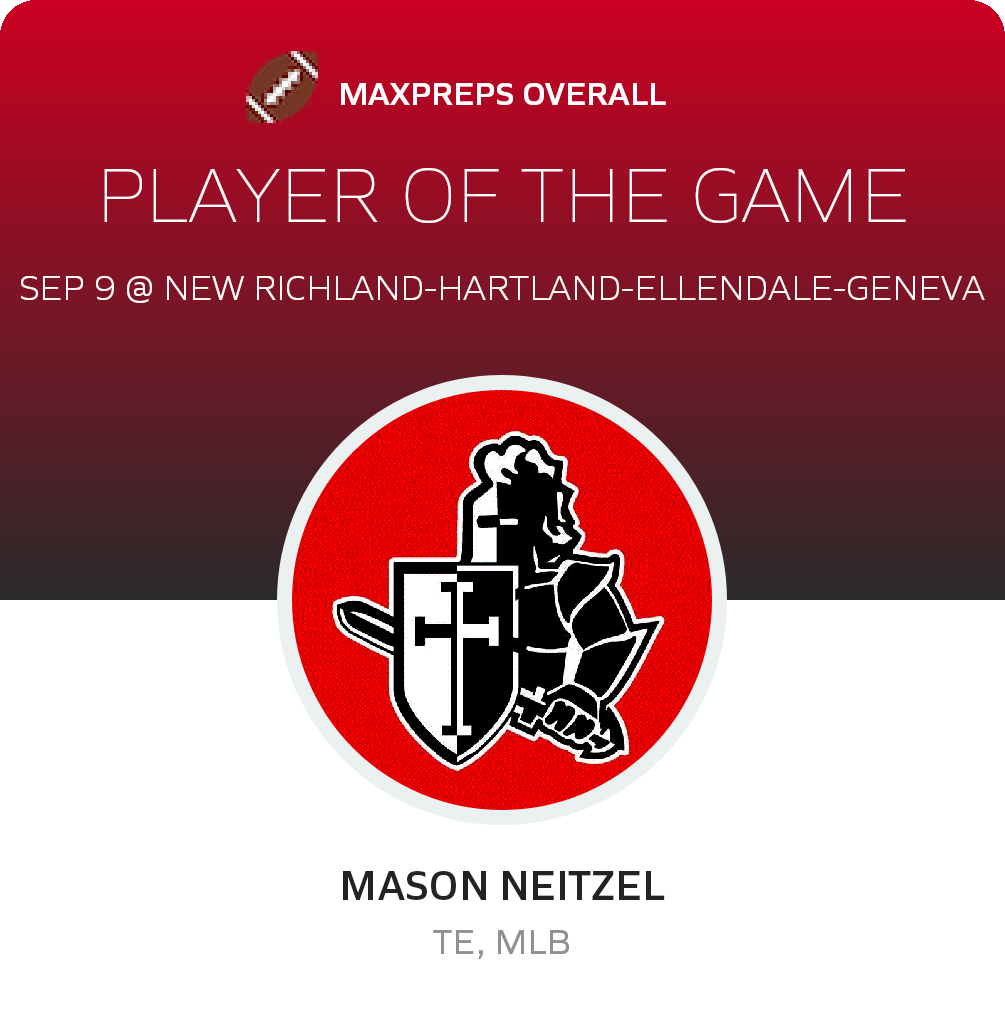 September 9, 2022: New Richland, MN 56072 The Mayer Lutheran Crusaders topped the host New Richland-Hartland-Ellendale-Geneva Panthers football team by a final score of 27-6 in Friday's non-league outing.
