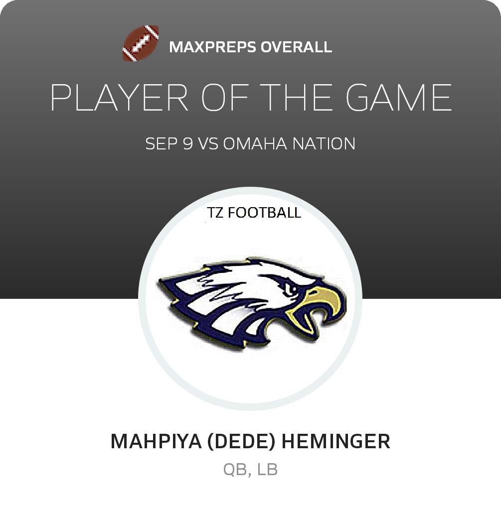 The Wambdi now possess a 2-1 record. They put it on the line next when they travel to St. Francis Indian for a All-Nations - East (9 Man) battle on Friday, September 16. Tiospa Zina will play a Warriors squad coming off a 60-0 league loss to Winnebago (Winnebago, NE). The Warriors record now stands at 0-3.