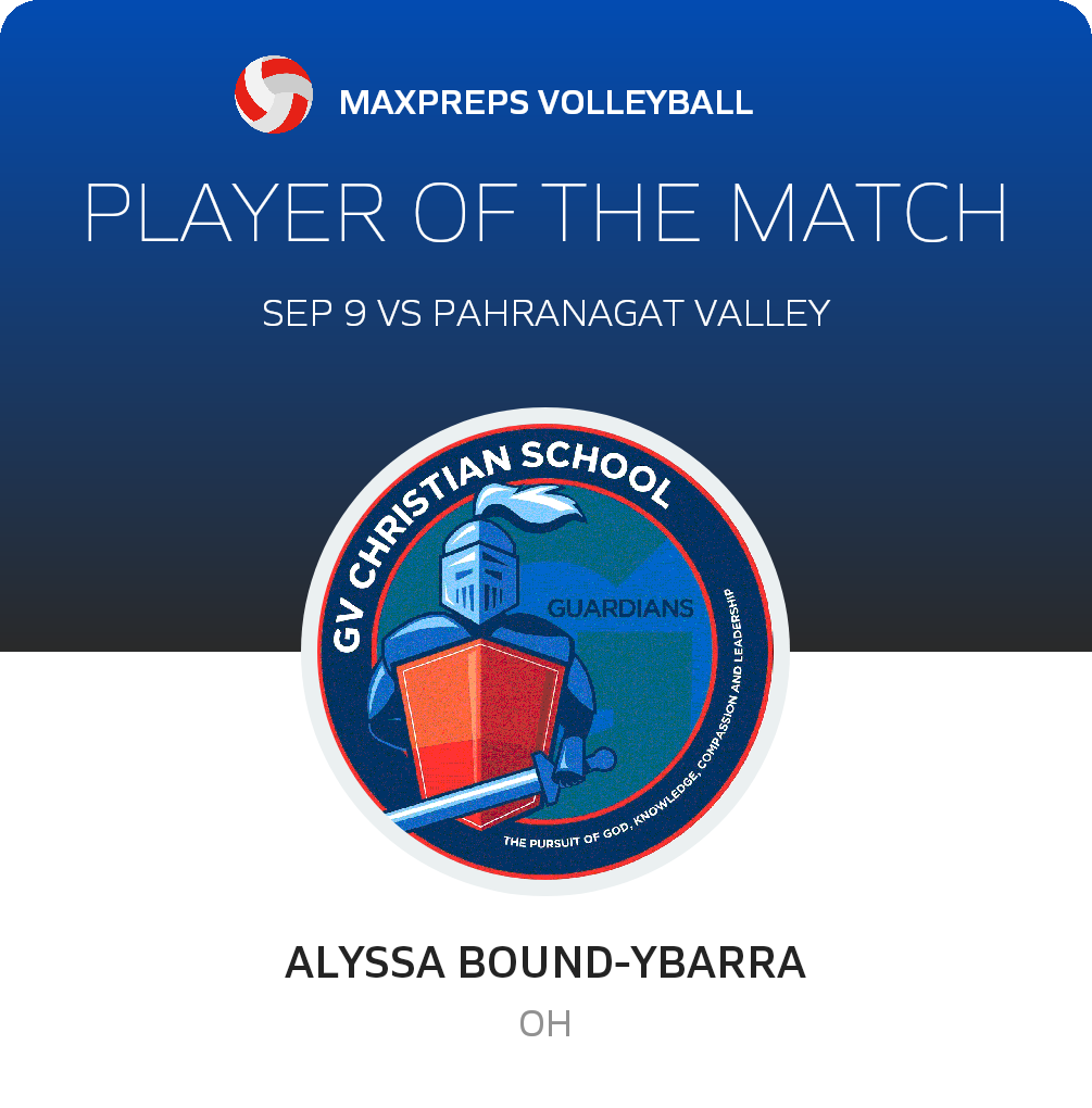 September 9, 2022: Henderson, NV 89014 In Friday's non-league battle, the host GV Christian Guardians volleyball team scored a 2-0 triumph over the Pahranagat Valley Panthers.