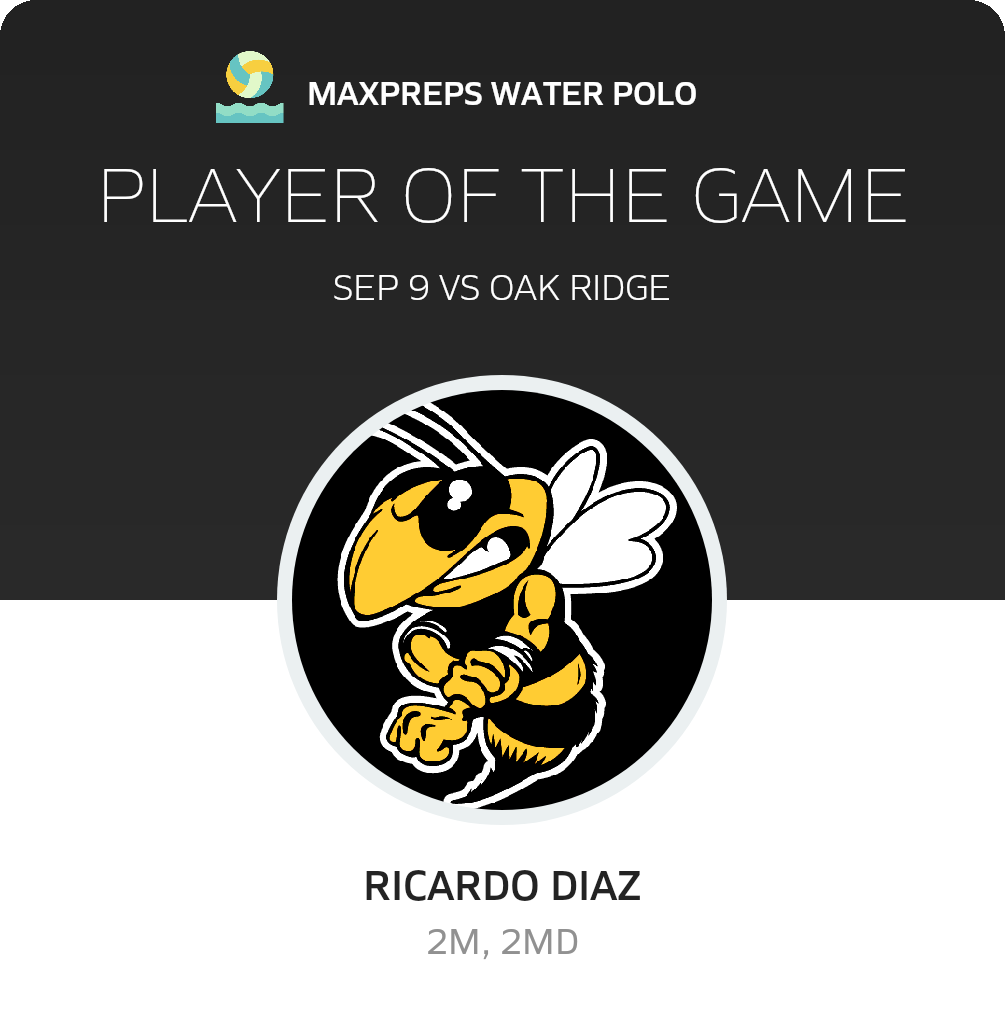 Congratulations to #7 Ricardo Diaz for being selected the Novato Water Polo Player of the Game.