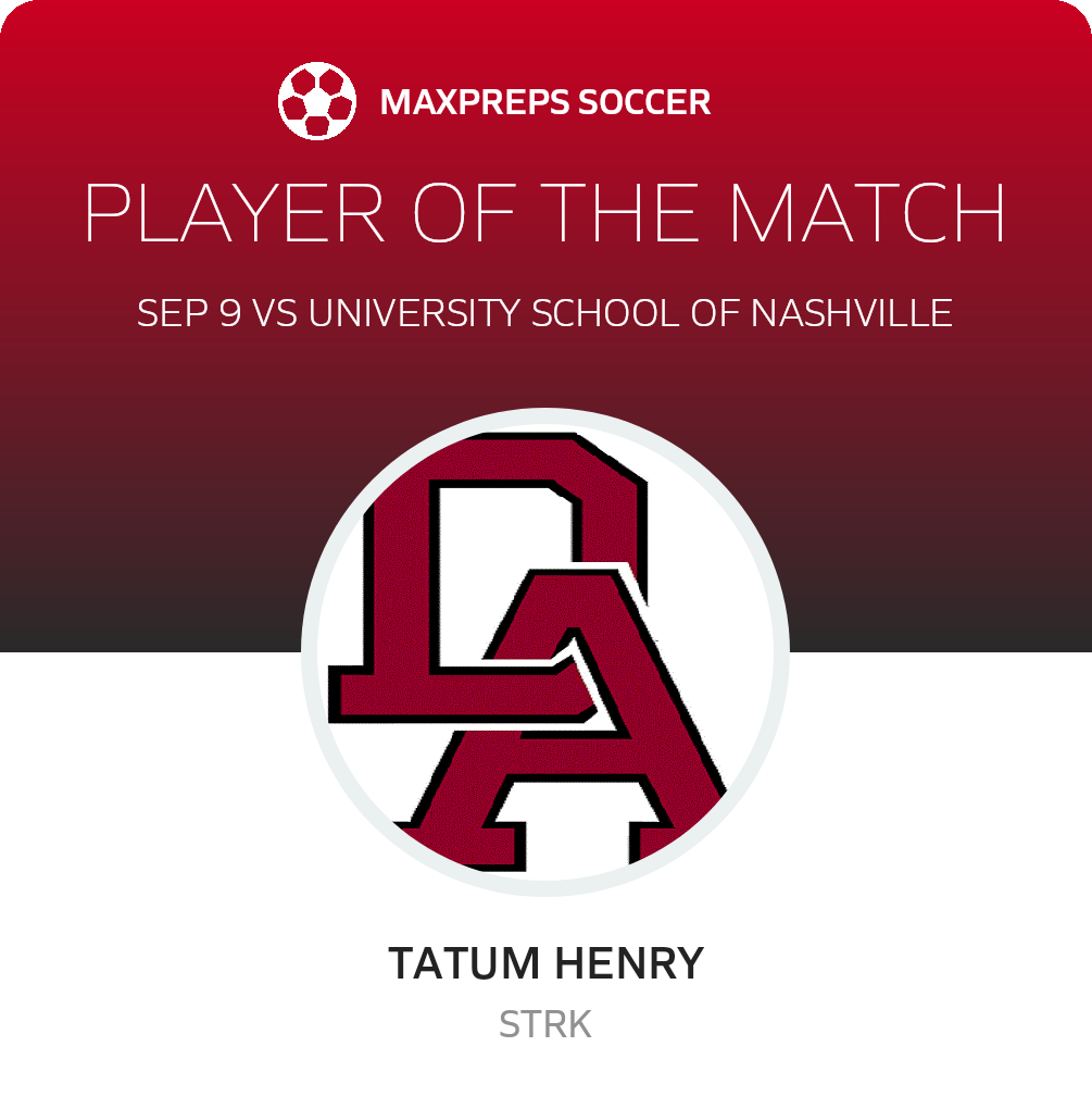 Congratulations to #10 Tatum Henry for being selected the Davidson Academy Girls Soccer Player of the Match.