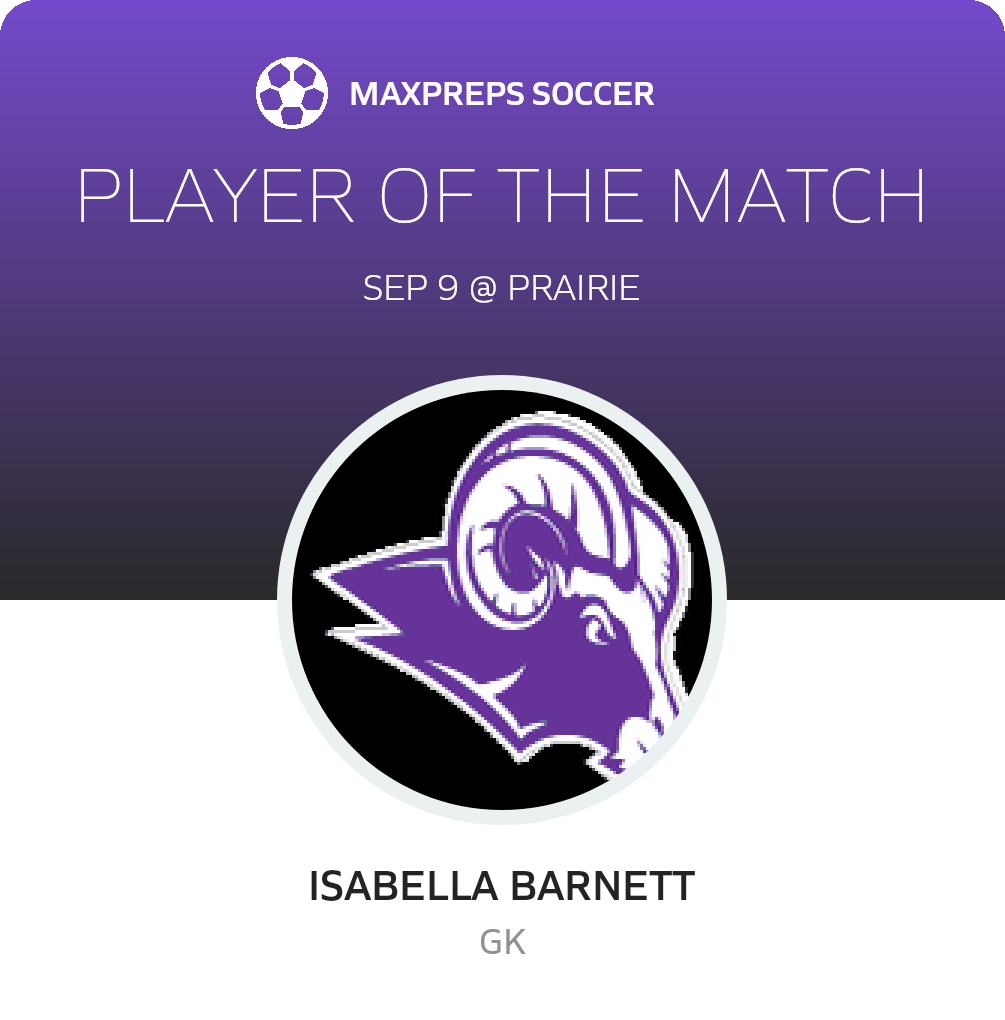 Congratulations to #1 Isabella Barnett for being selected the North Thurston Girls Soccer Player of the Match.