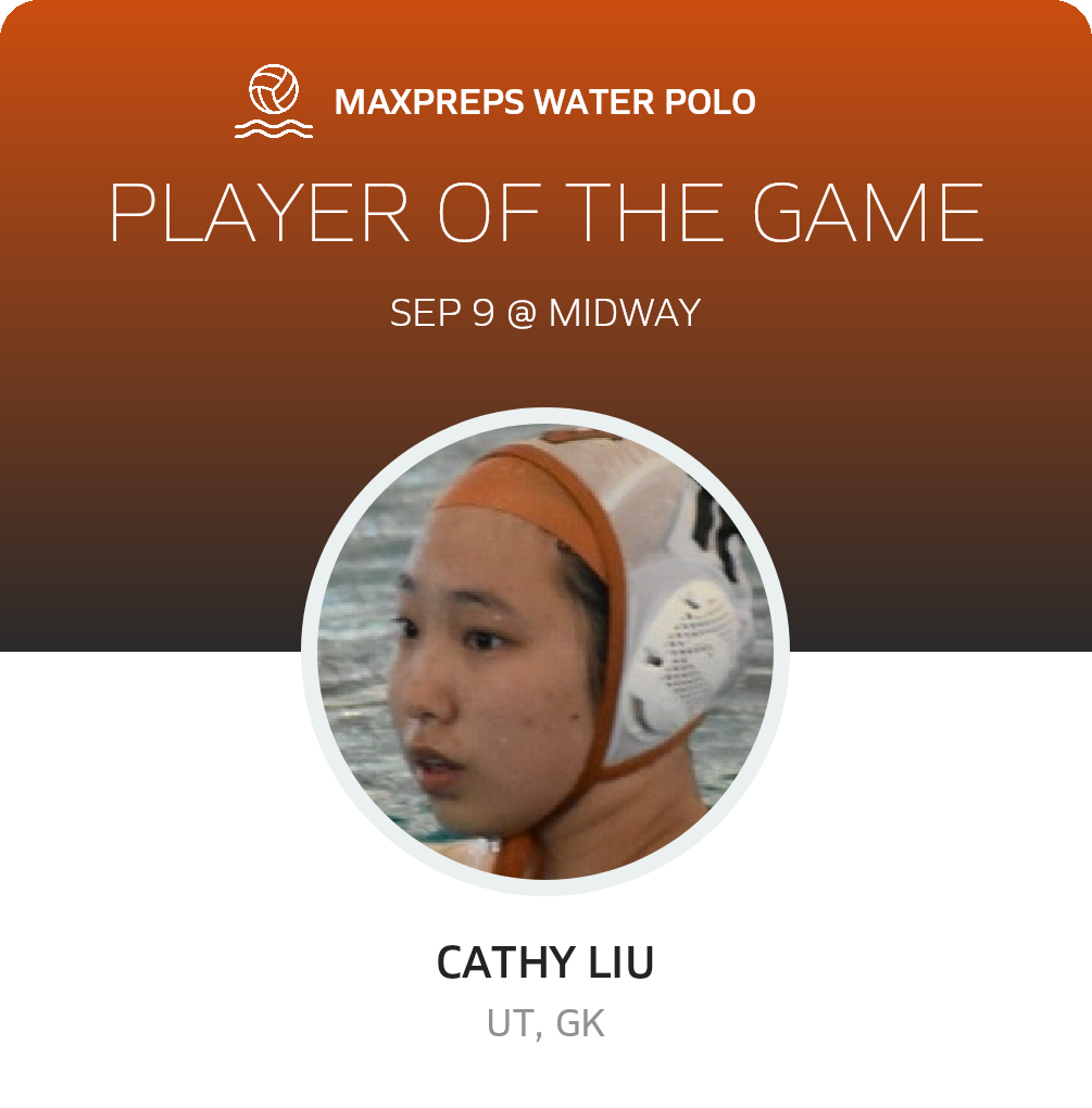 Congratulations to #16 Cathy Liu for being selected the Round Rock Westwood Girls Water Polo Player of the Game.