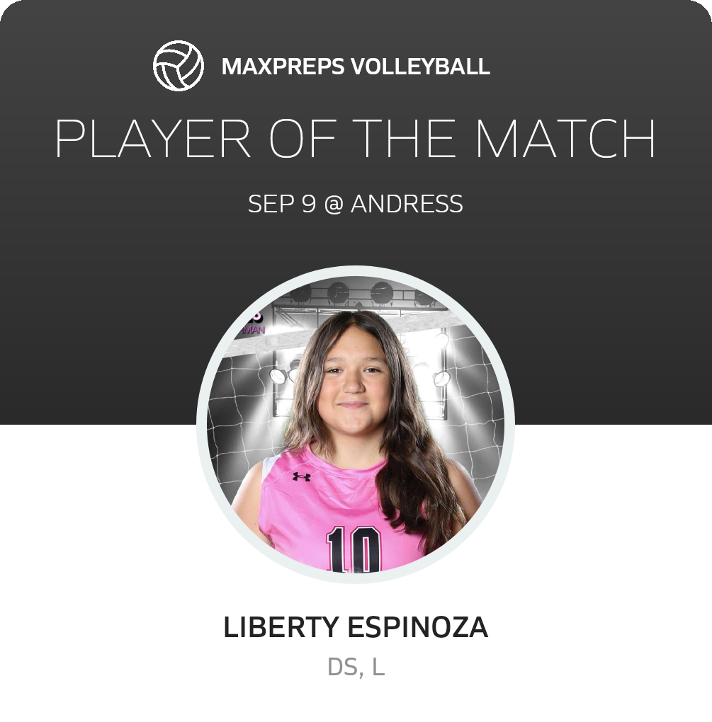 Congratulations to #10 Liberty Espinoza for being selected the Young Women's STEAM Research & Preparatory Academy Volleyball Player of the Match.