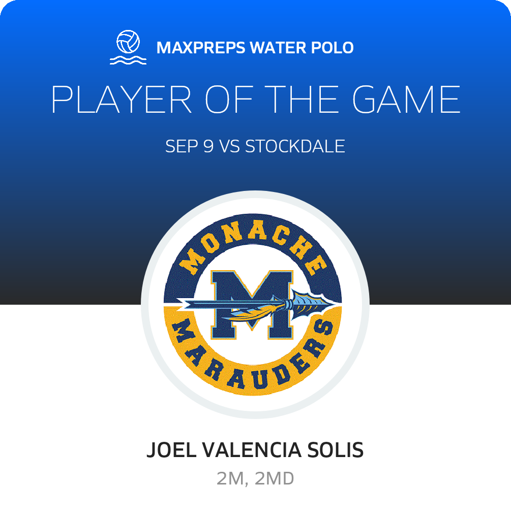 Congratulations to Joel Valencia Solis for being selected the Monache Water Polo Player of the Game.