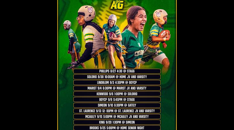 On Wednesday, Sep 10, 2025, the Agricultural Science Varsity Girls Flag Football team won their Gately Stadium in Chicago, IL game against Simeon High School by a score of 12-0.