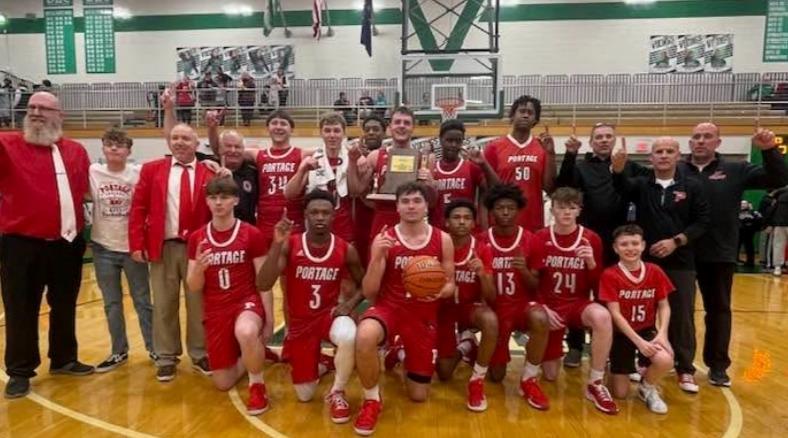 On Tuesday, Dec 23, 2025, the Portage Varsity Boys Basketball team won their Christmas Tournament at Highland HS game against Andrean High School by a score of 69-46.