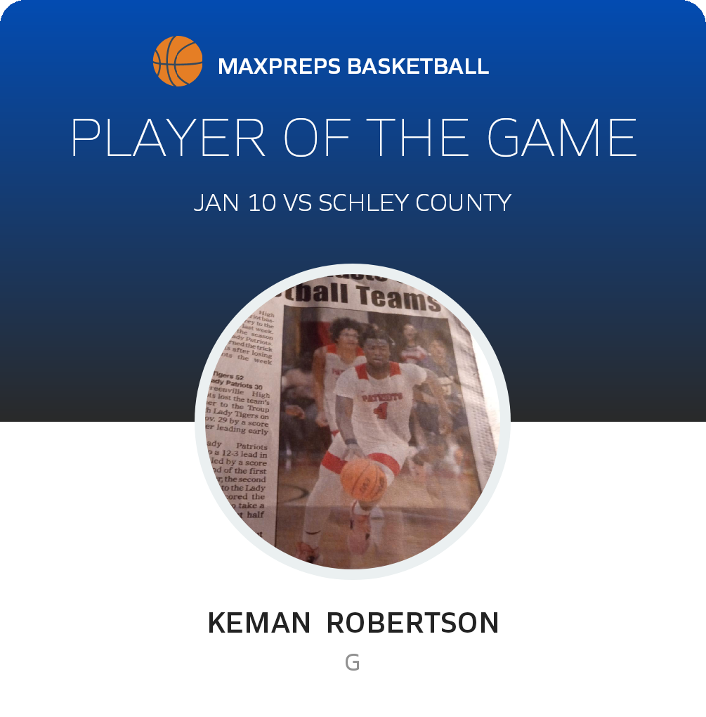 In their next game, the Patriots face the Webster County (Preston, GA) in a non-league match, on Friday, January 13. Greenville will attempt to move on its 7-4 season record. The enter the match with a 0-7 record after their 88-20 league loss to Marion County (Buena Vista, GA).