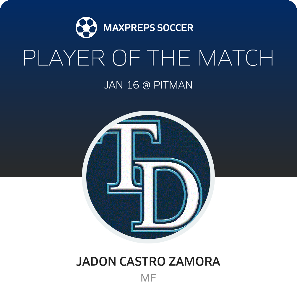 Congratulations to #6 Jadon Castro Zamora for being selected the Downey Soccer Player of the Match.