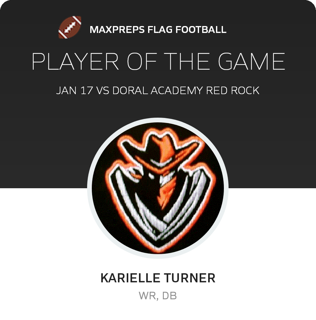 Congratulations to #3 Karielle Turner for being selected the Chaparral Girls Flag Football Player of the Game.