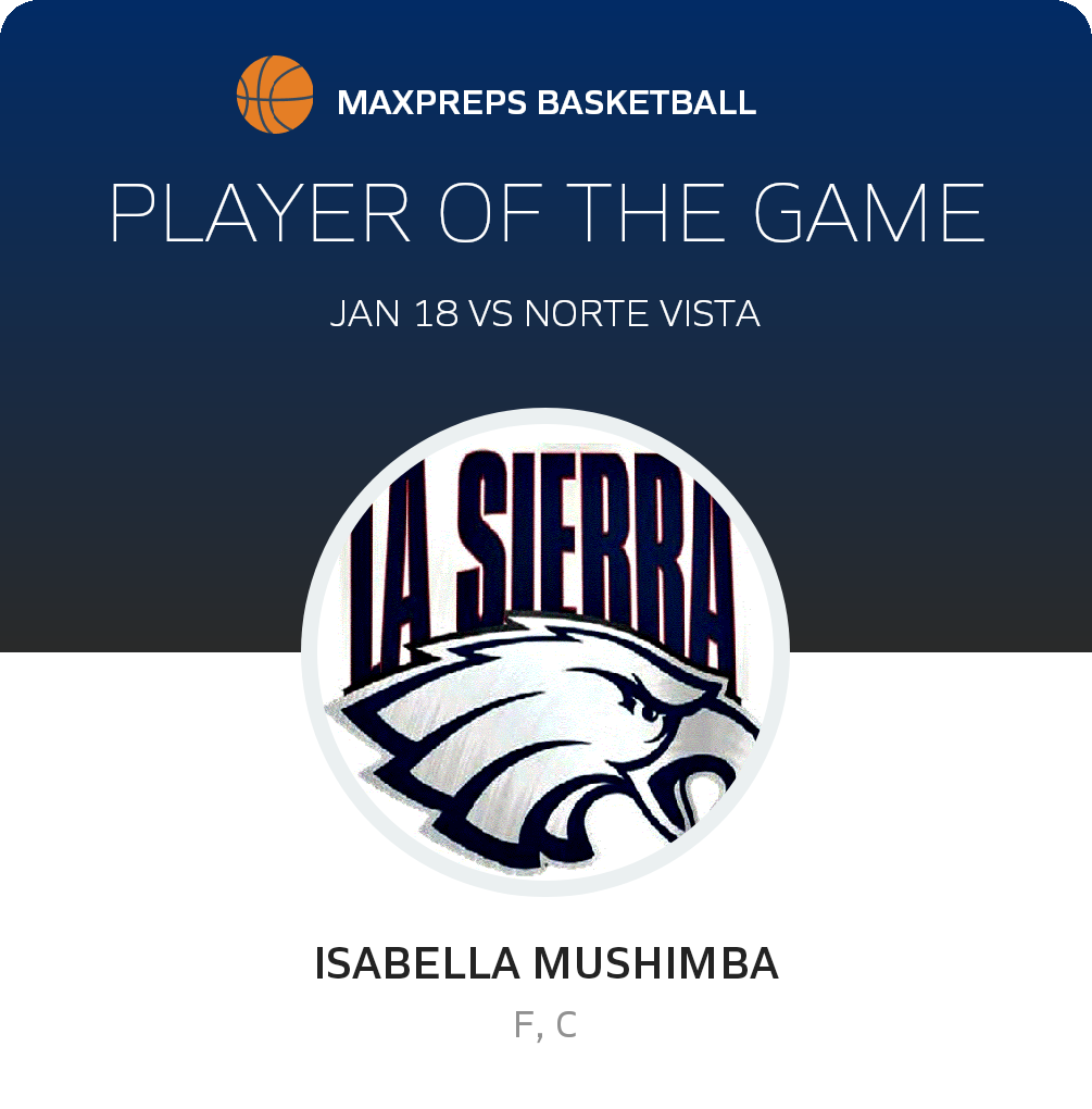 Congratulations to #13 Isabella Mushimba for being selected the La Sierra Girls JV Basketball Player of the Game.