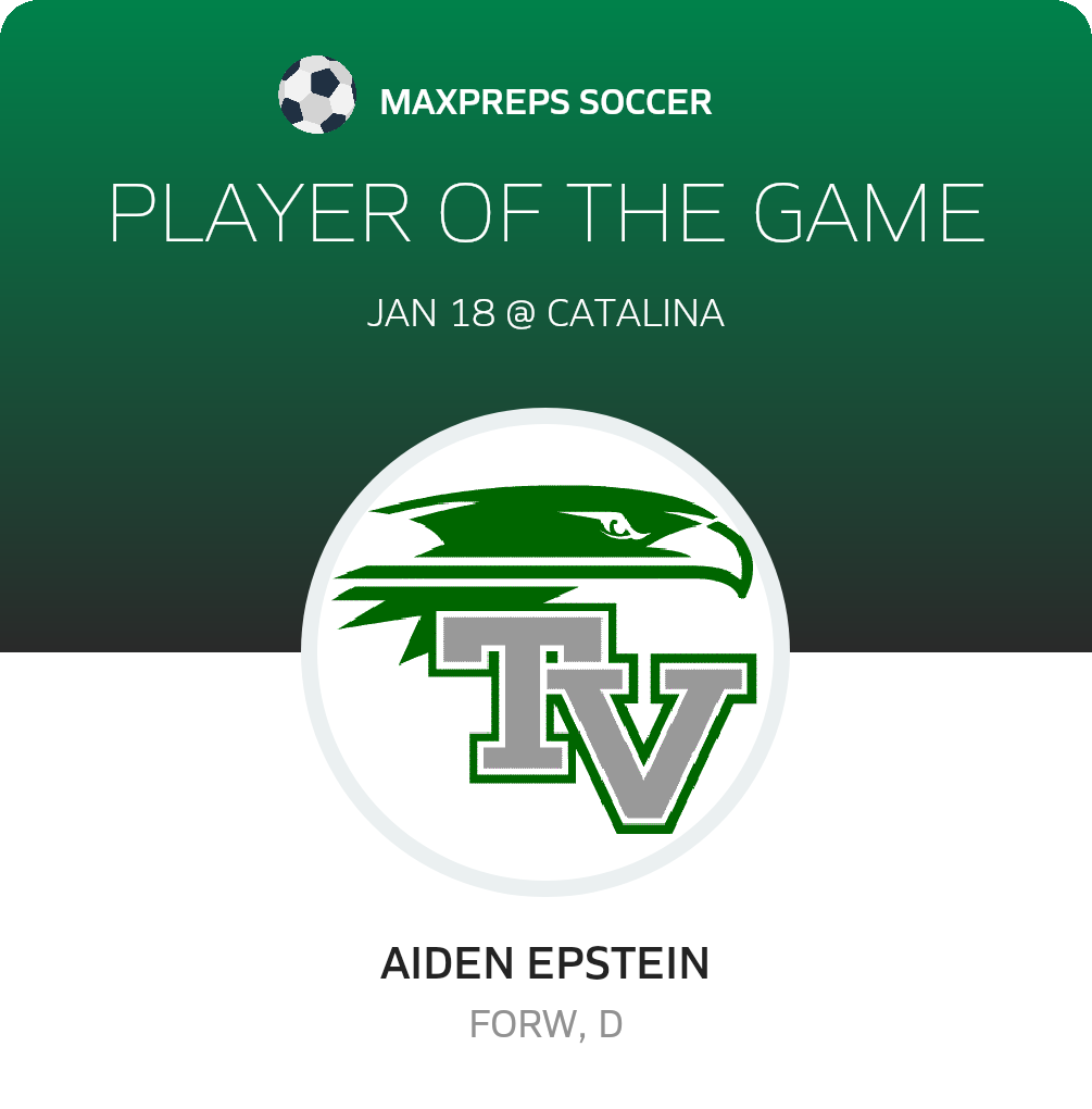 Congratulations to #15 Aiden Epstein for being selected the Tanque Verde Soccer Player of the Match.