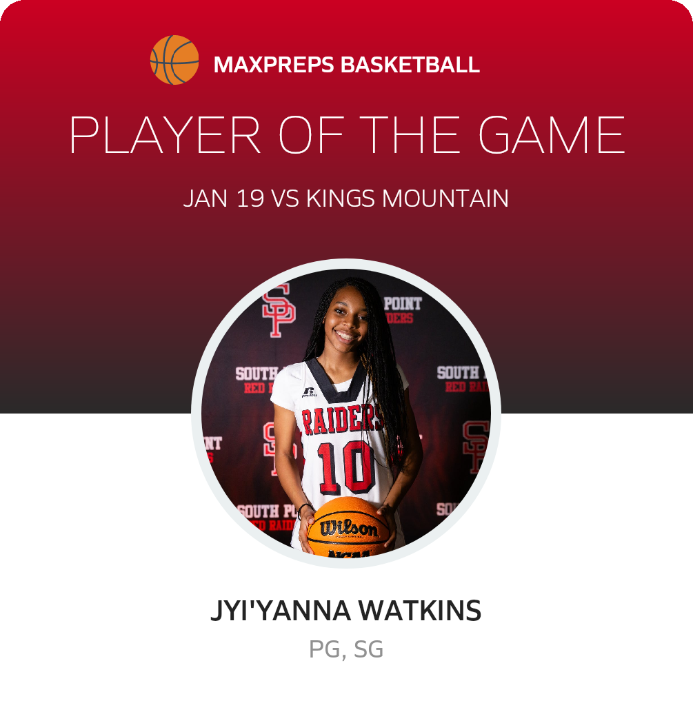 In Friday's non-league outing, the South Point Red Raiders (Belmont, NC) basketball squad felled the visiting Kings Mountain Mountaineers (Kings Mountain, NC), by a margin of 30-13.