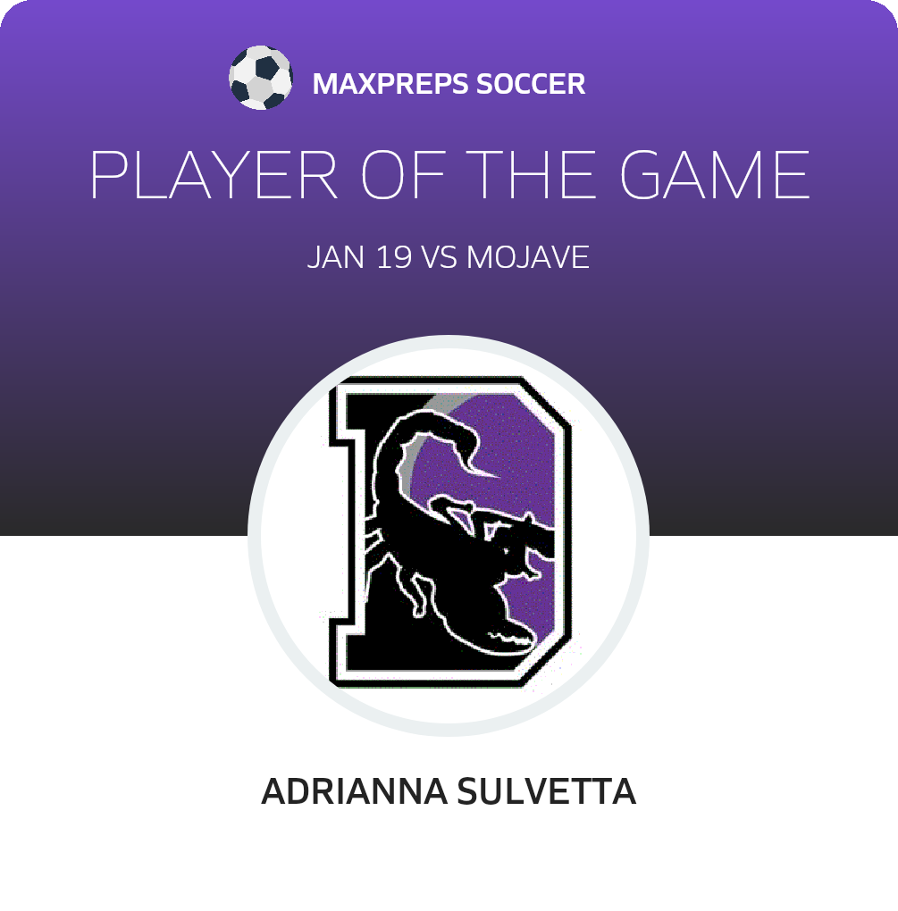 Congratulations to #14 Adrianna Sulvetta for being selected the Desert Girls Soccer Player of the Match.
