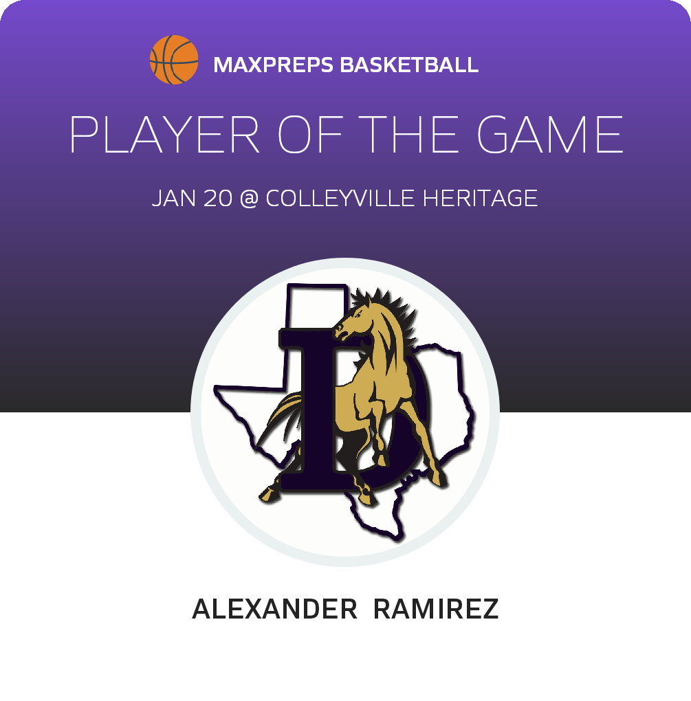 Congratulations to #20 Alexander Ramirez for being selected the Denton Freshman Basketball Player of the Game.