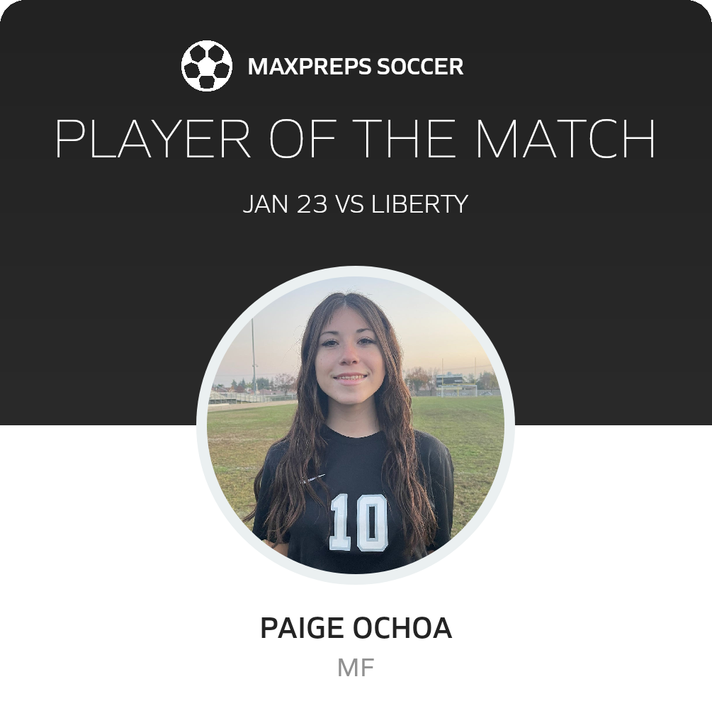 Congratulations to #10 PAIGE OCHOA for being selected the Stockdale Girls Freshman Soccer Player of the Match.
