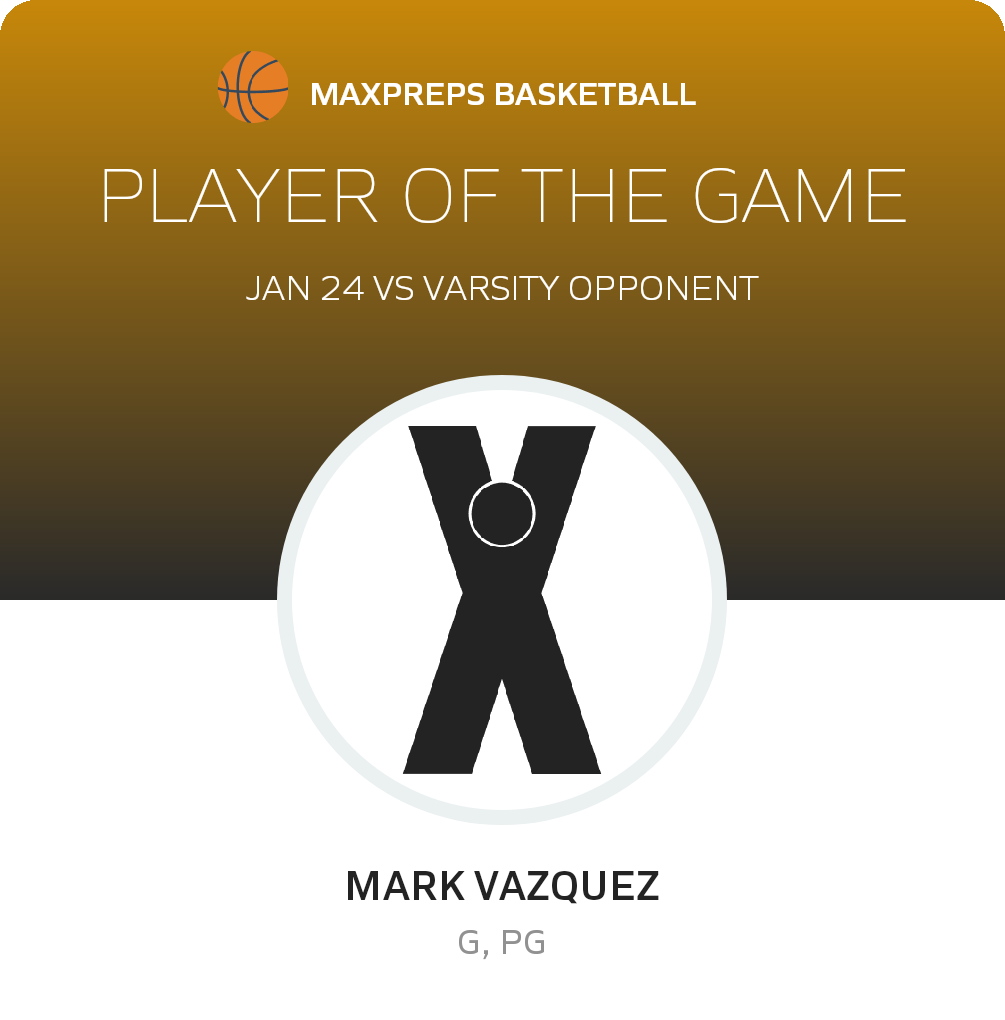Congratulations to #4 Mark Vazquez for being selected the Victory Christian Basketball Player of the Game.