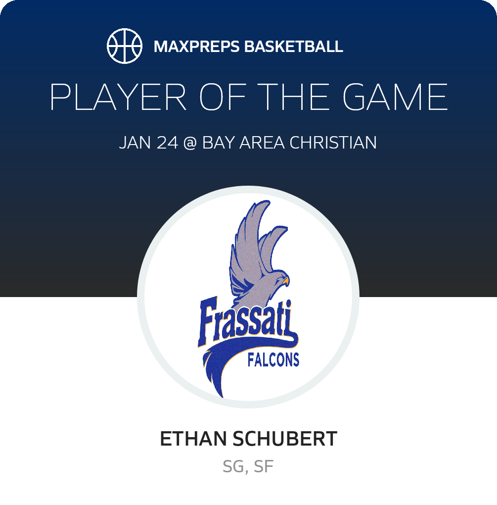 Congratulations to #0 Ethan Schubert for being selected the Frassati Catholic Basketball Player of the Game.