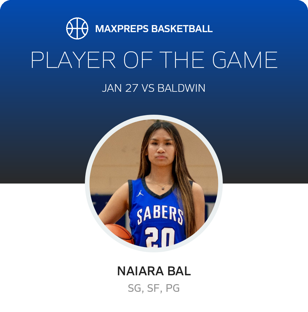 The Maui Sabers (Kahului, HI) basketball crushed the visiting Baldwin Bears (Wailuku, HI), 53-22 in Monday's league bout.