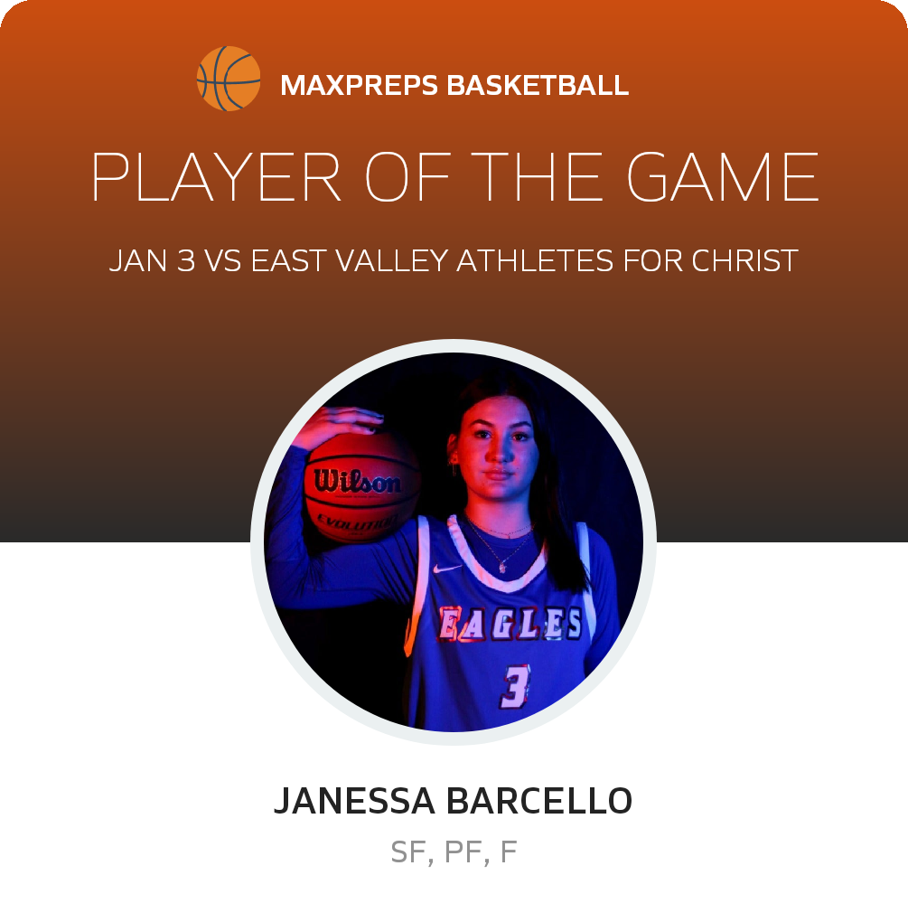 The Eagles now possess a 3-1 record. They put it on the line next when they travel to Ridgeline Academy for a non-league battle on Tuesday, January 3. East Valley Athletes for Christ will battle a Eagles team coming off a 41-39 non-league loss to Maryvale Prep (Phoenix, AZ). The Eagles record now stands at 8-3.