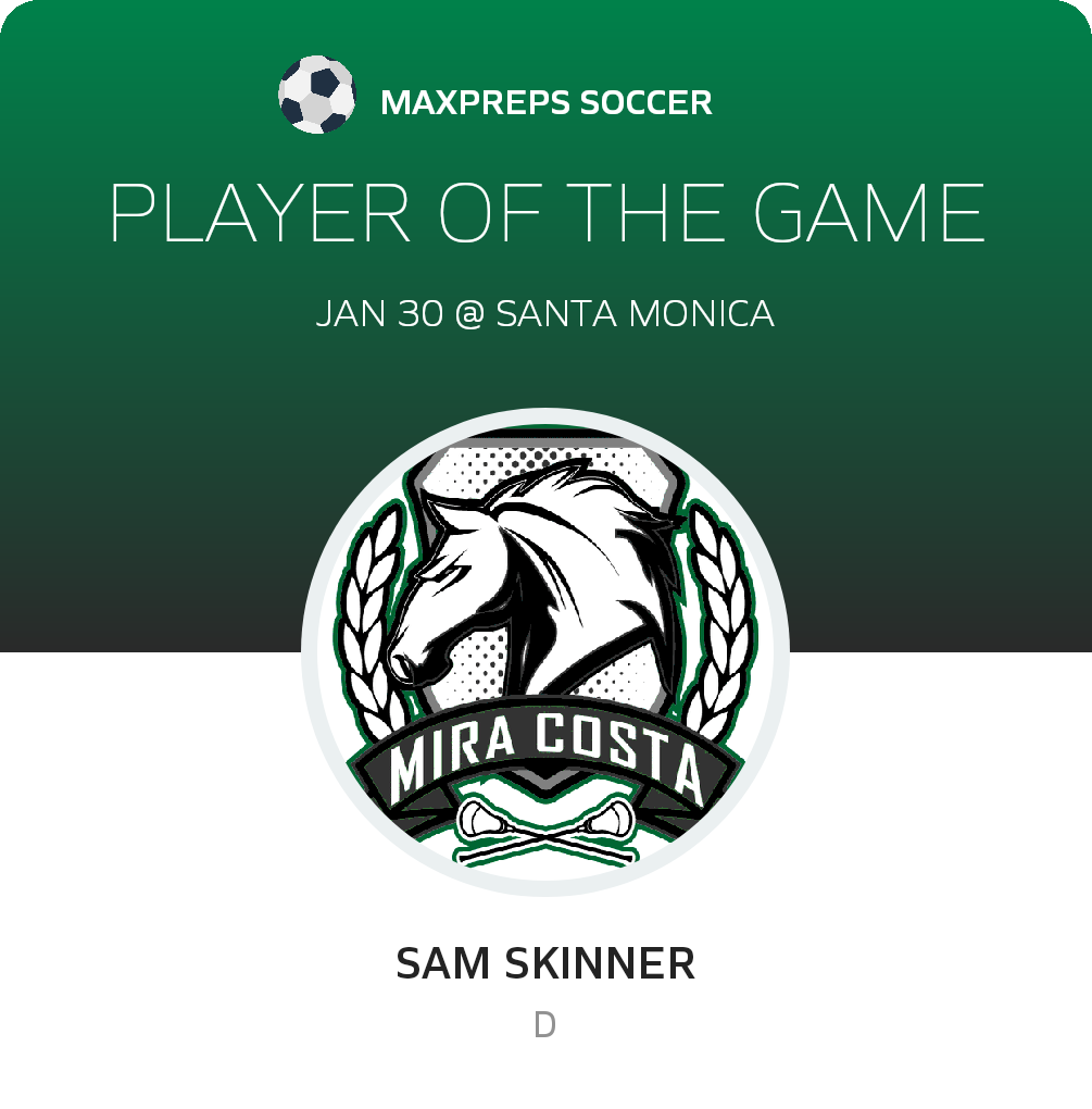 In Monday's league battle, the visiting Mira Costa Mustangs soccer squad scored a close 2-1 triumph over the Santa Monica Vikings.