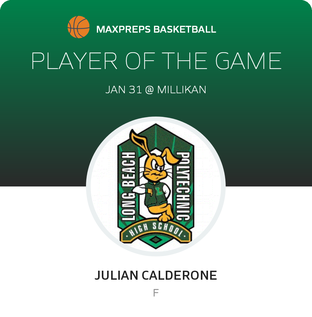 Congratulations to #5 Julian Calderone for being selected the Long Beach Poly Freshman Basketball Player of the Game.