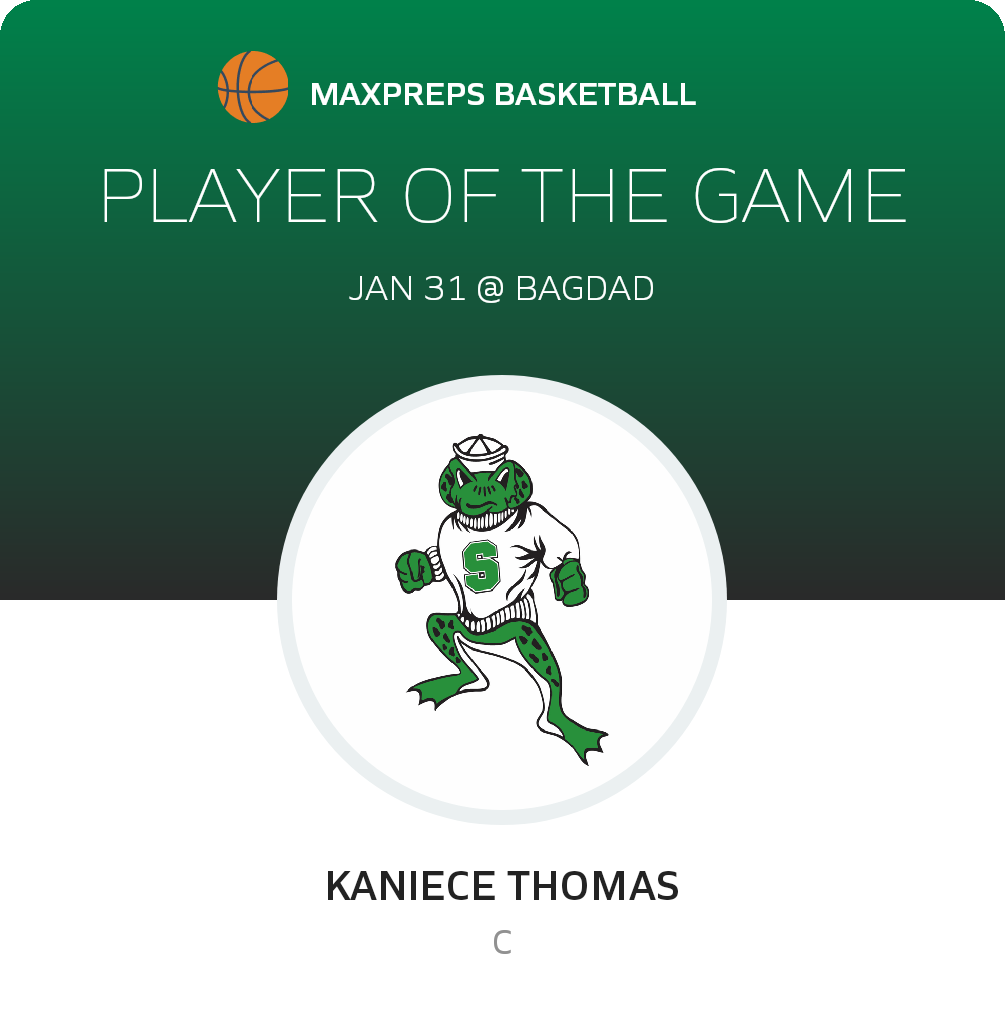 Congratulations to #32 Kaniece Thomas for being selected the Salome Girls Basketball Player of the Game.
