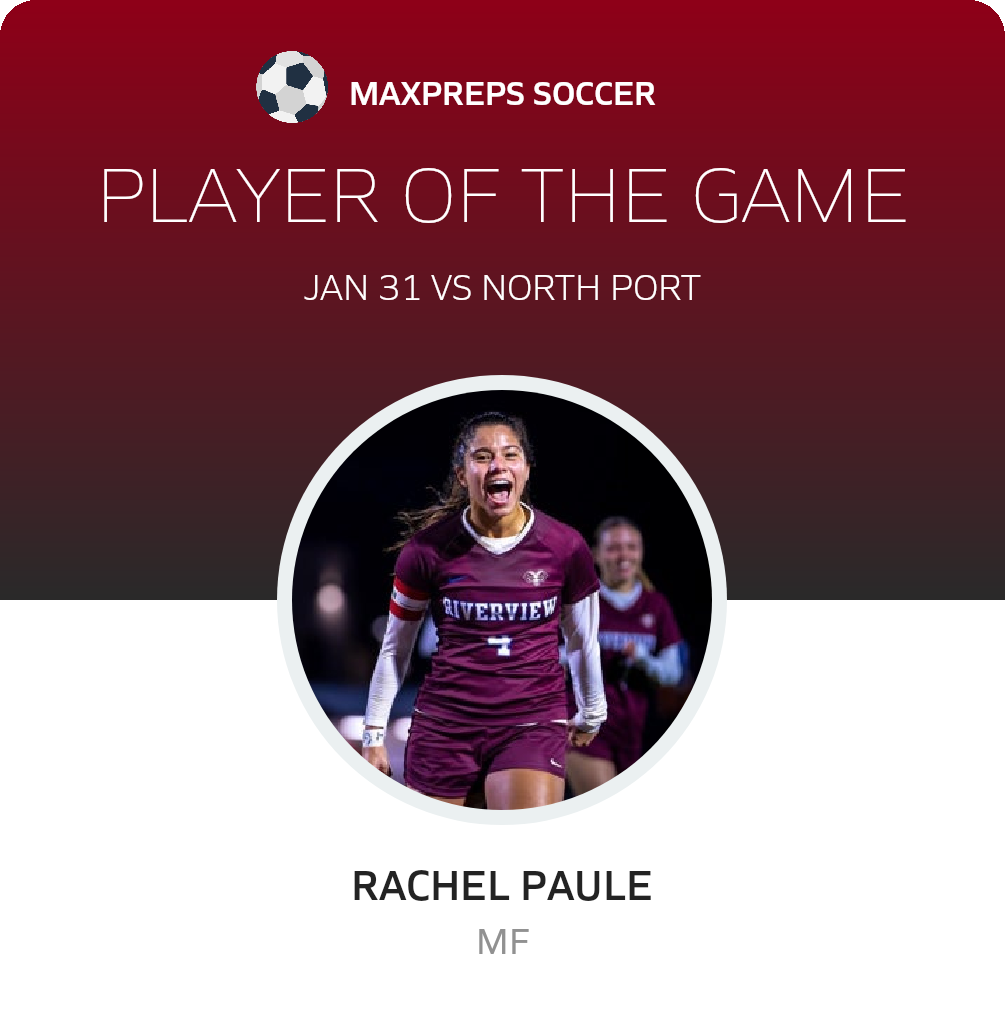 Congratulations to #4 Rachel Paule for being selected the Riverview Sarasota Girls Soccer Player of the Match.