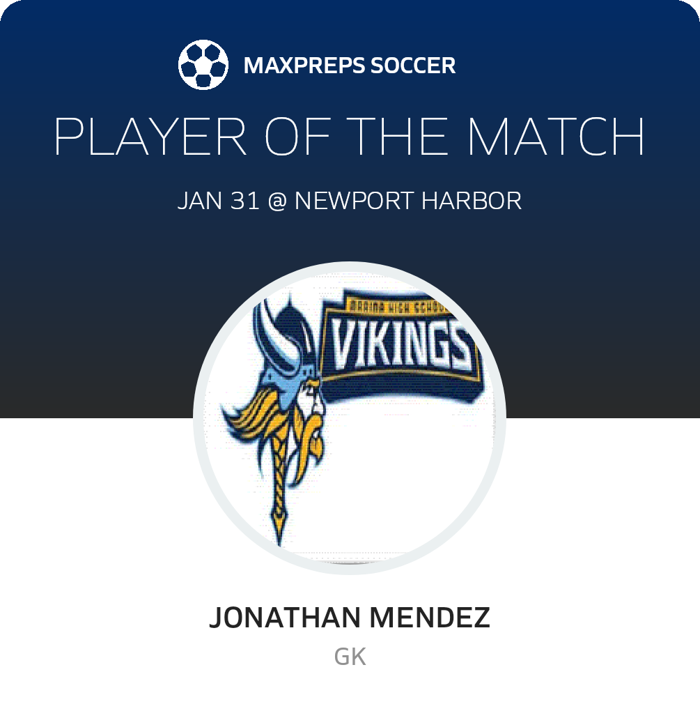 Congratulations to #1 Jonathan Mendez for being selected the Marina Soccer Player of the Match.