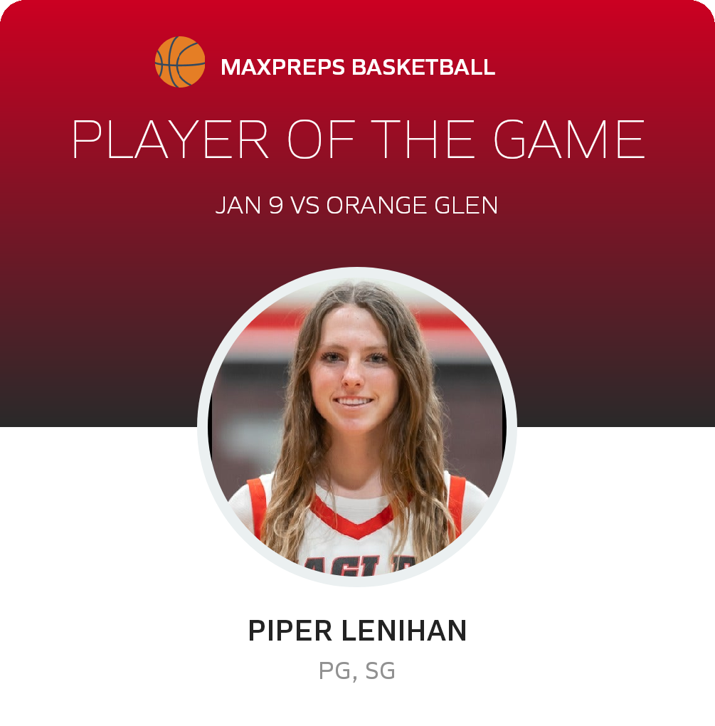 The Orange Glen Patriots basketball team (Escondido, CA), was overwhelmed 65-26 in Monday's league battle with the host Santa Fe Christian Eagles (Solana Beach, CA)