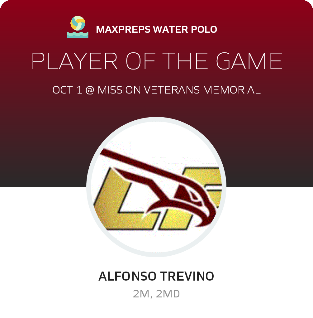 Congratulations to #11 Alfonso Trevino for being selected the Los Fresnos Water Polo Player of the Game.