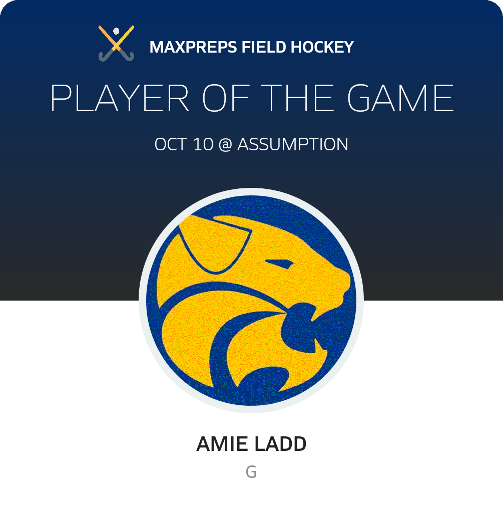 Congratulations to #95 Amie Ladd for being selected the Kentucky Country Day Field Hockey Player of the Game.