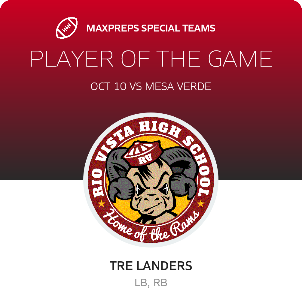 In their next game, the Rams battle the Woodland Christian Cardinals (Woodland, CA) in a Sierra Delta League game, on Friday, October 17. Rio Vista will attempt to better on its 5-2 season record. The Cardinals enter the game with a 6-1 record after their 2-0 league win over Elite (Vallejo, CA).