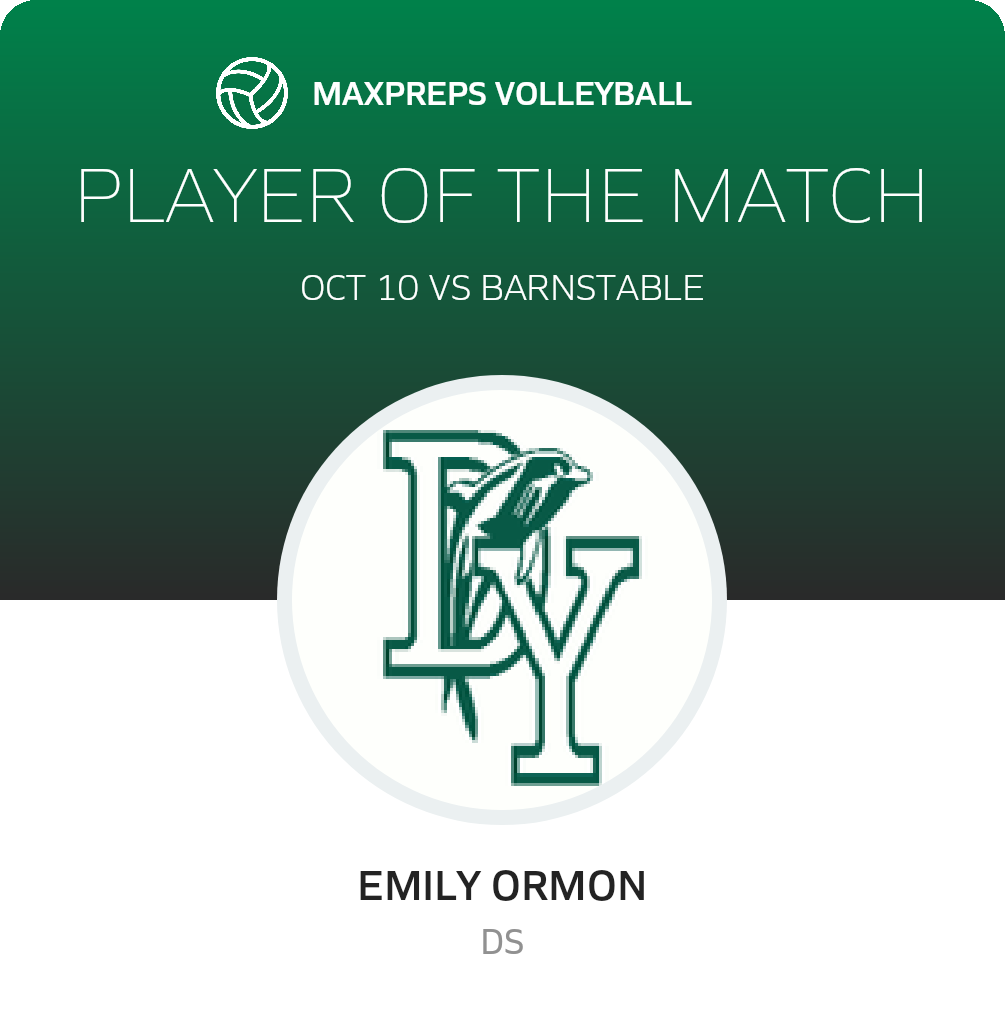 The Barnstable Red Hawks (Hyannis, MA) volleyball knocked off the host Dennis-Yarmouth Regional Dolphins (South Yarmouth, MA), 3-0 in Friday's non-league bout.