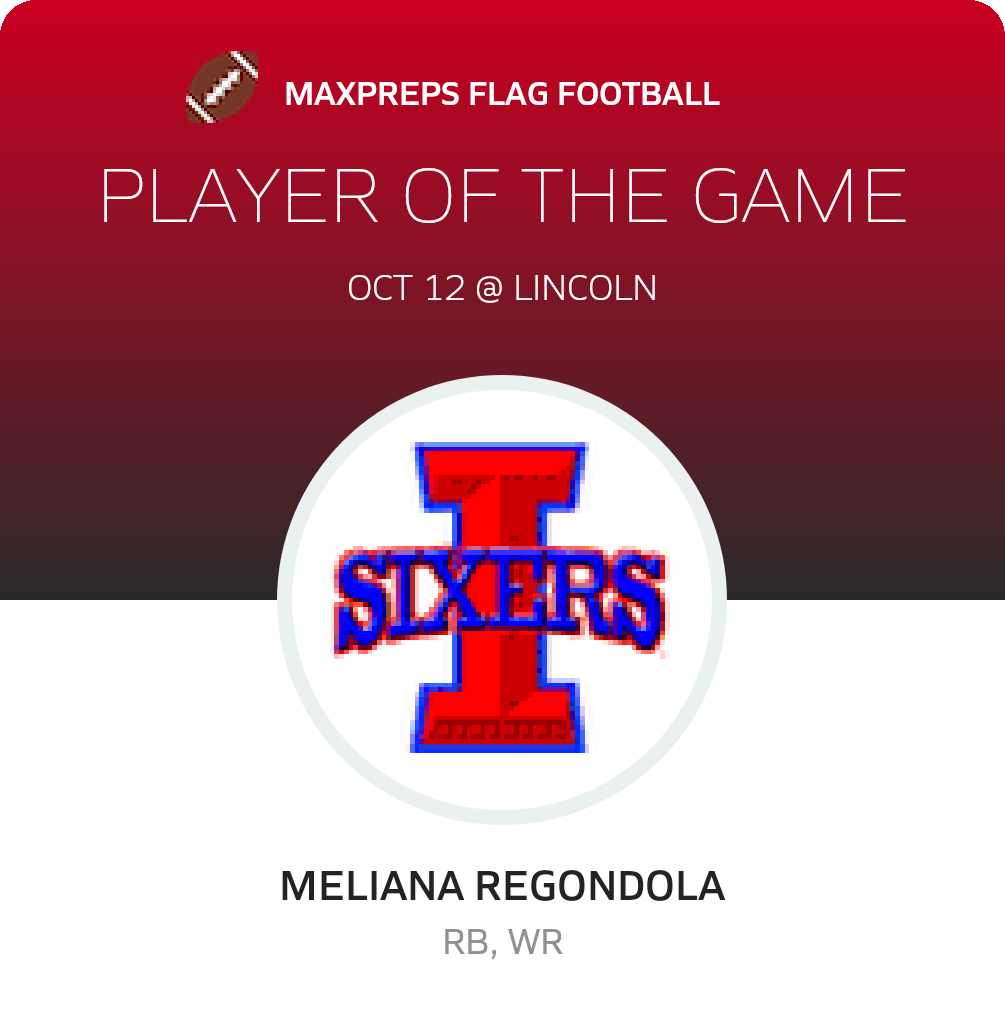 Congratulations to #2 Meliana Regondola for being selected the Independence Girls Flag Football Player of the Game.