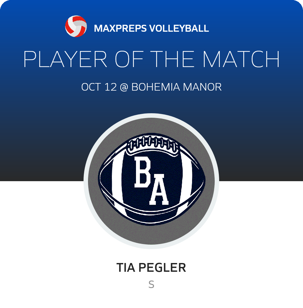 Congratulations to #26 Tia Pegler for being selected the Bel Air Volleyball Player of the Match.