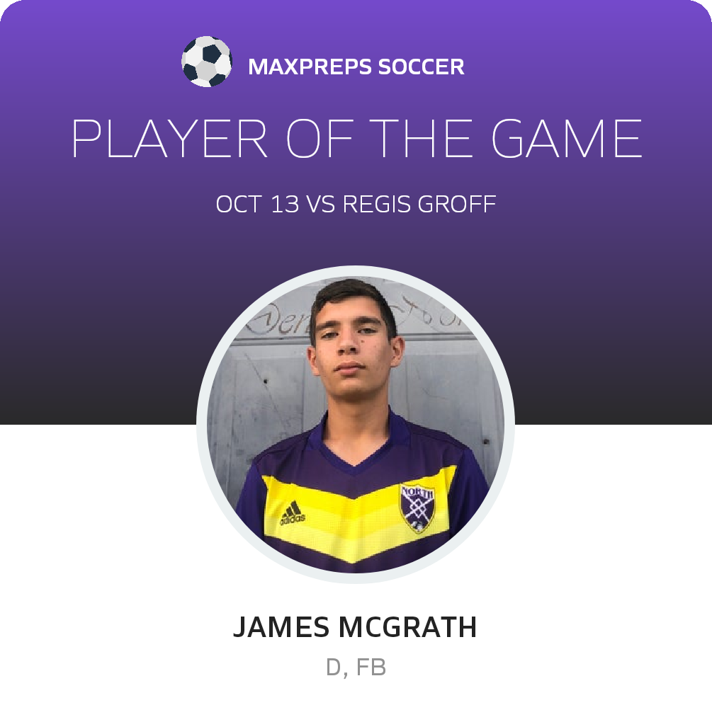 Congratulations to #22 James McGrath for being selected the Denver North JV Soccer Player of the Match.