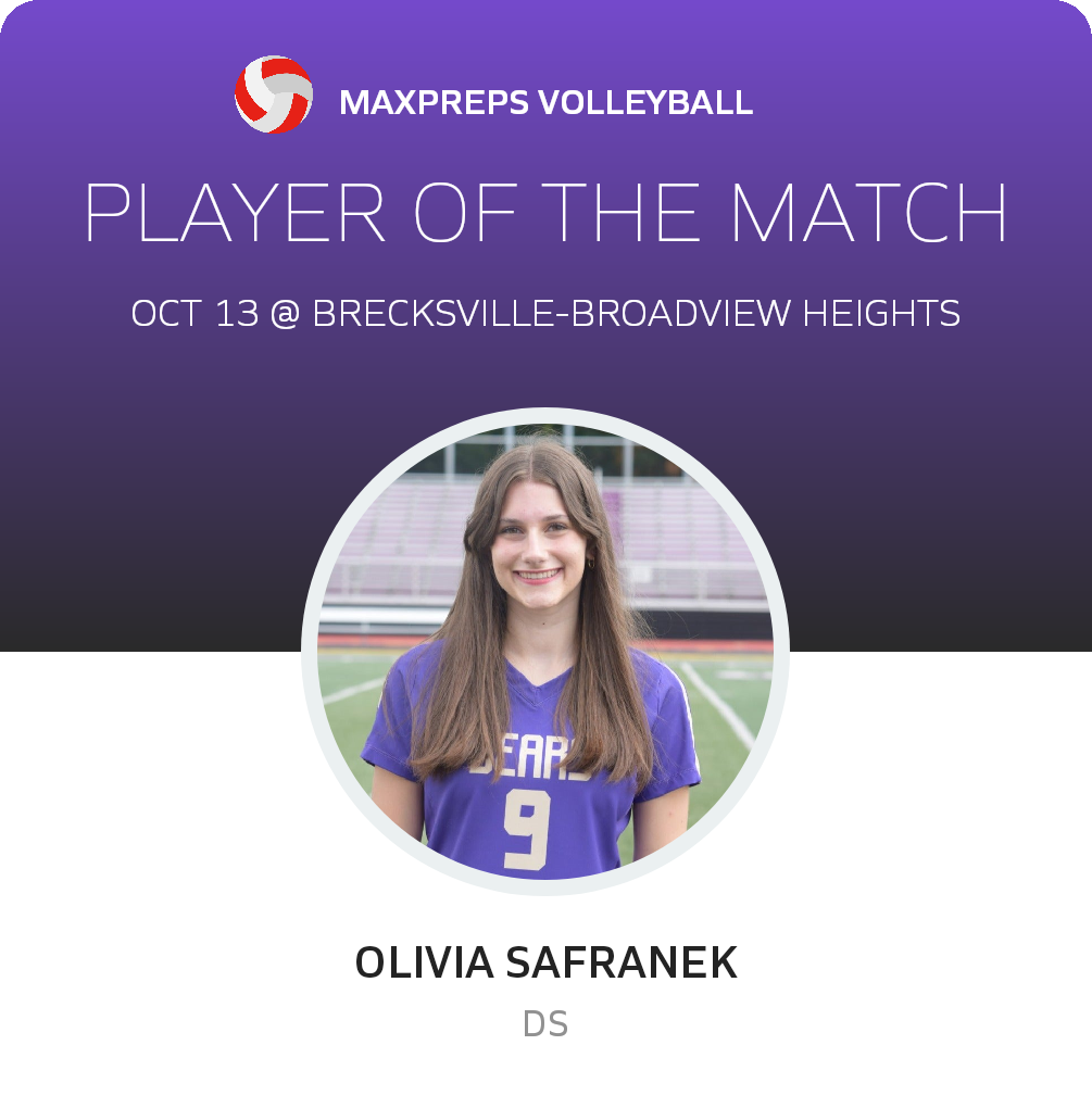Congratulations to #9 Olivia Safranek for being selected the North Royalton Volleyball Player of the Match.