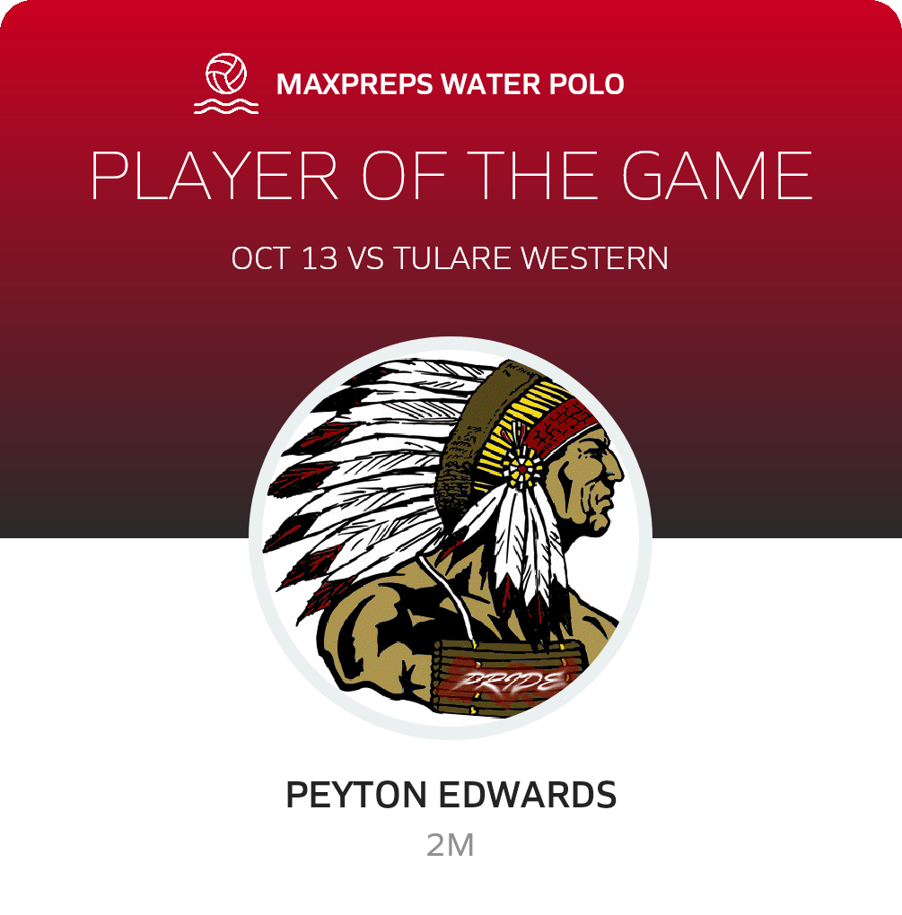 Congratulations to Peyton Edwards for being selected the Tulare Union Girls JV Water Polo Player of the Game.