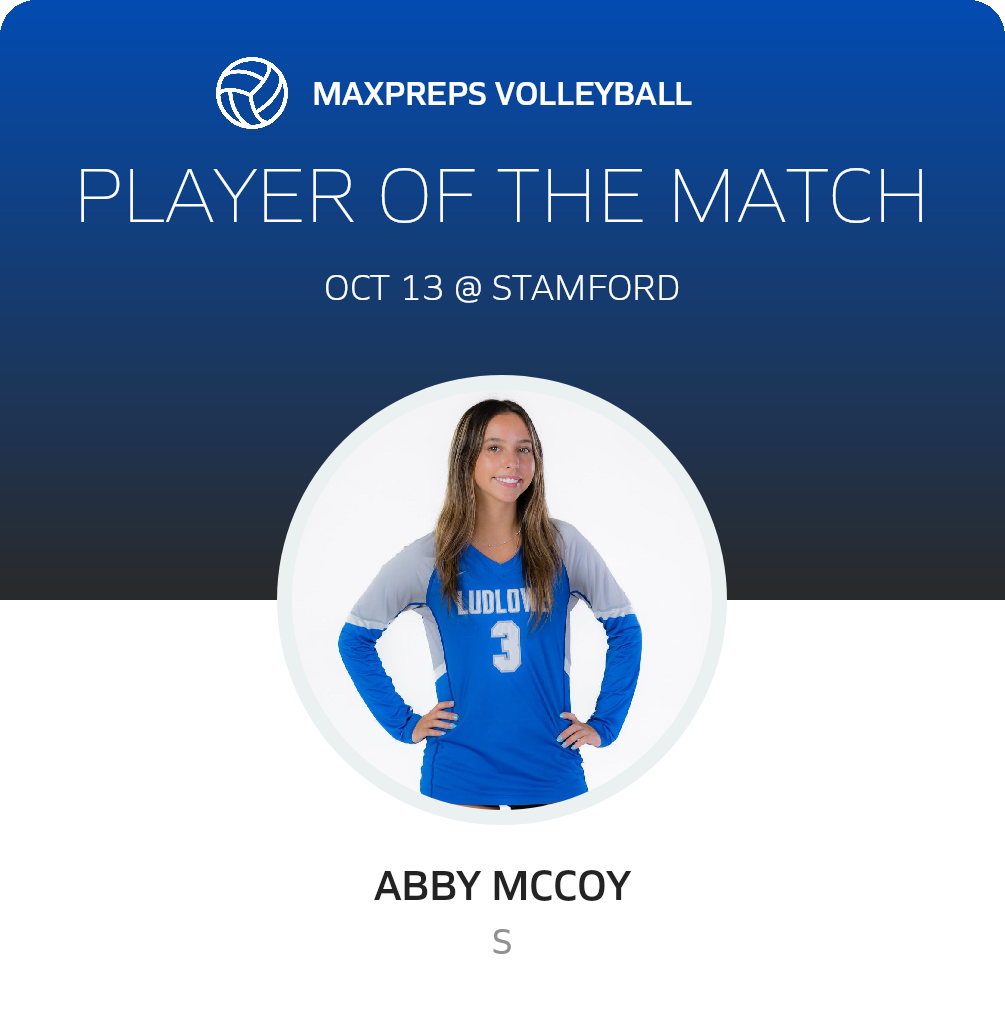 Congratulations to #3 Abby Mccoy for being selected the Ludlowe Volleyball Player of the Match.