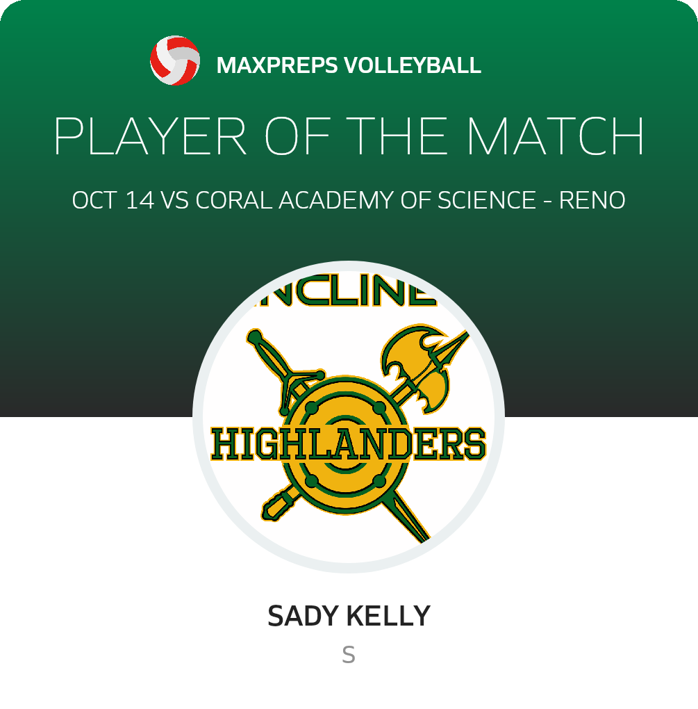 In Saturday's league contest, the Incline Highlanders (Incline Village, NV) volleyball squad were winner over the visiting Coral Academy of Science - Reno Falcons (Reno, NV), by a margin of 2-0.