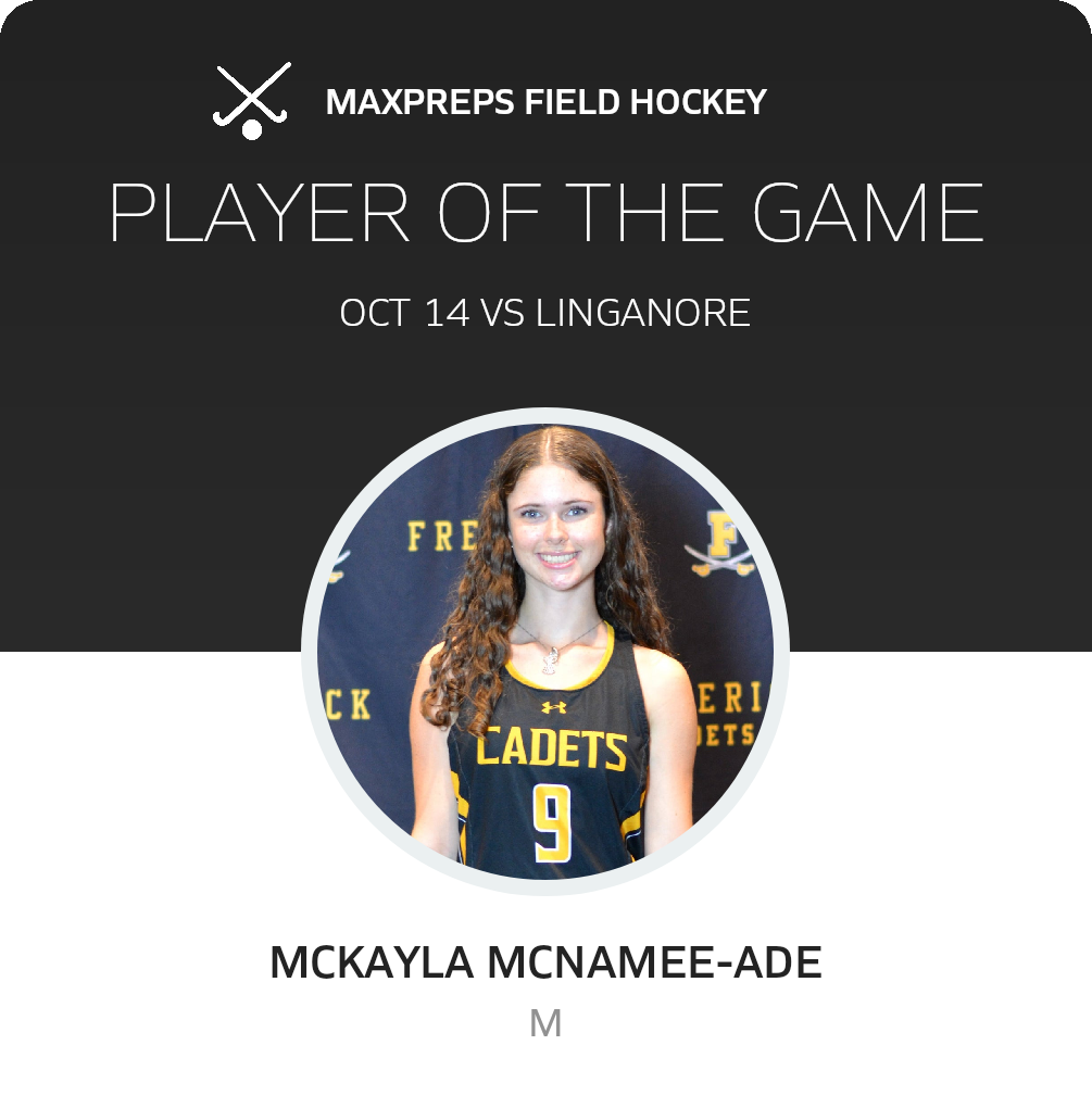 Congratulations to #9 Mckayla McNamee-Ade for being selected the Frederick Field Hockey Player of the Game.